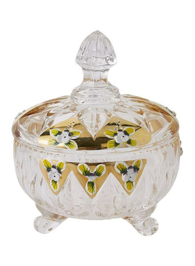 Opalina : ست کاسه شکر 2 تکه شفاف/طلایی 12x12x7، درب 12x12x8 سانتی متر