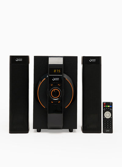 noon east : بلندگوی 2.1 CH بلوتوث چند رسانه ای خروجی 50 وات با نمایشگر LED، پخش از راه دور و USB EM-3092FLT مشکی