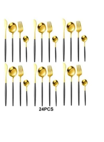 سرویس قاشق و چنگال استیل 24 تکه با سایزهای مختلف مشکی/طلایی