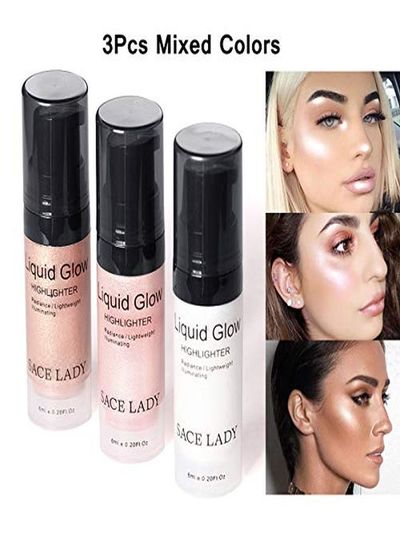 SACE LADY : 3 بسته ست آرایشی هایلایتر مایع کیت روشن کننده درخشان و درخشان برای صورت استخوان گونه درخشش بدن برنزی براق کننده هایلایتر روشن کننده آرایش (3×6Ml/0.2Fl Oz)