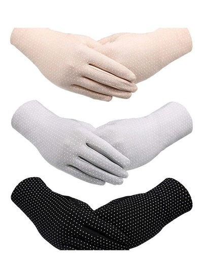 3 جفت دستکش ضد آفتاب بژ/خاکستری/مشکی