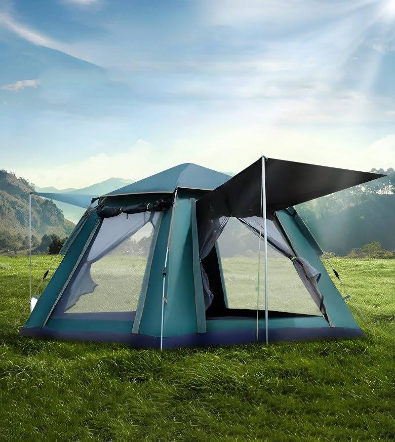 🏕️ چادر بازشو خودکار و آسان: با بهرهگیری از یک سیستم هیدرولیکی پیشرفته، این چادر تنها در ۳ ثانیه بهطور خودکار باز میشود. طراحی مدرن آن نسبت به چادرهای سنتی برتری دارد و با تیرکهای مقاوم و فریم سبک از پیشمتصلشده، برپایی آن را سریع و آسان کرده و به شما این امکان را میدهد که زمان بیشتری را برای ماجراجویی در فضای باز صرف کنید.