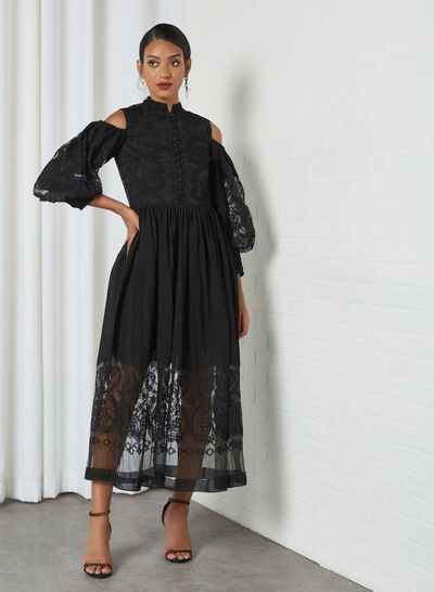 Threadz by Ajooni : لباس میدی فرسودگی شانه سرد مشکی