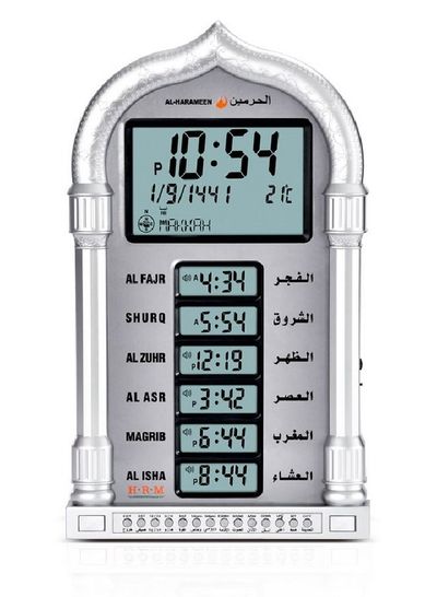 AL-HARAMEEN : ساعت زنگ دار دیجیتال زمان نماز نقره ای/خاکستری