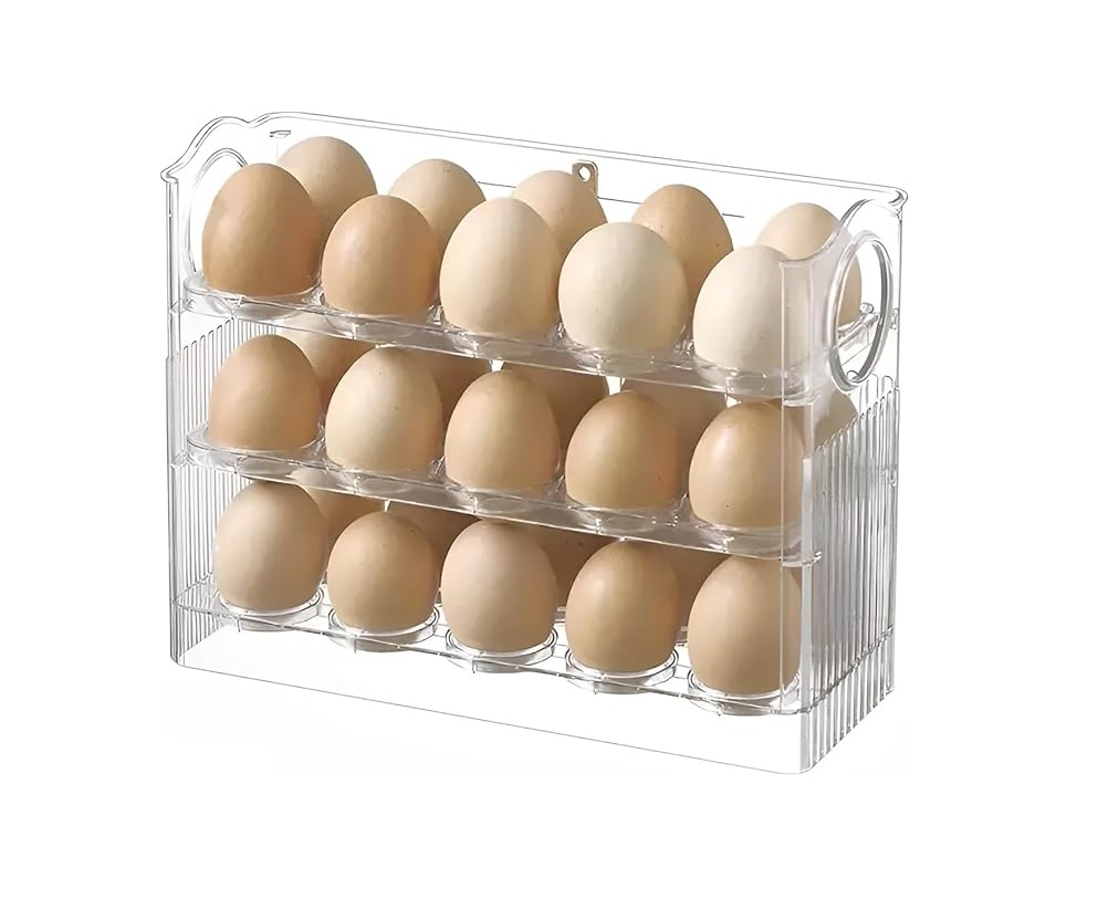استفاده بهینه از فضا: این قفسه نگهدارنده تخم‌مرغ سه‌طبقه، فضای ذخیره‌سازی کافی را فراهم می‌کند در حالی که کمترین فضای ممکن را در یخچال، انباری یا روی پیشخوان آشپزخانه اشغال می‌کند.