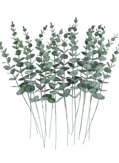 KASTWAVE : برگ های اکالیپتوس 20 عدد ساقه های مصنوعی ساقه های خاکستری واقعی، شاخه های لمسی سبز برای دفتر خانه مرکزی تزئین گل ضیافت عروسی