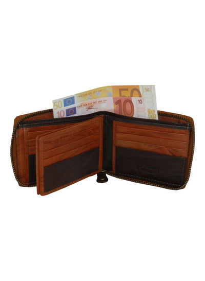 LAVERI LEATHER : کیف پول چرم اصل با زنگ زدگی کامل زیپ