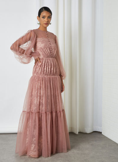 Threadz by Ajooni : توری روکش توری ماکسی لباس صورتی