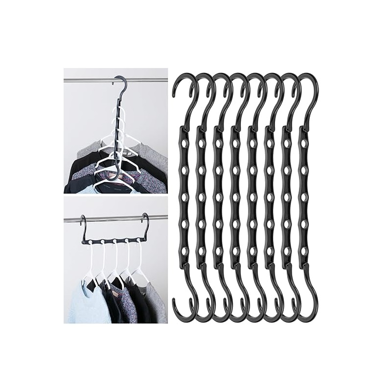 Package includes 8 space-saving hangers in black color. You can store multiple garments on a single magic hanger rack, keeping clothes organized and wrinkle-free.