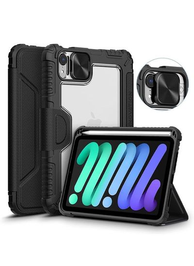 قاب Nillkin برای iPad Mini 6 2021، [کاور دوربین اسلاید، مداد نگهدارنده داخلی] روکش پایه محافظ چرمی PU با خواب/بیداری خودکار - مشکی