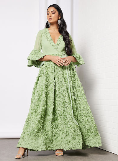 Threadz by Ajooni : لباس ماکسی گلدار جلوی پلیسه دار سبز