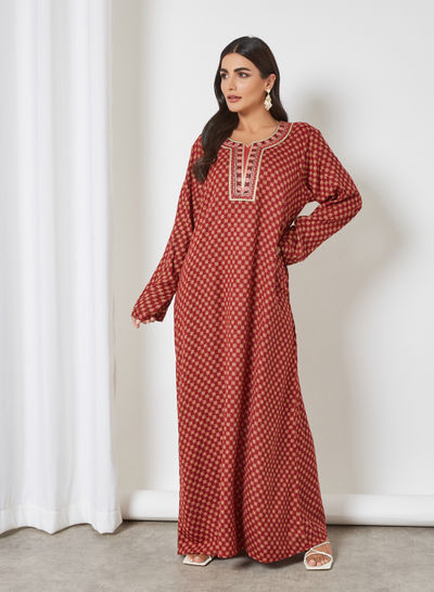 | Name En | Polka Dot Print Jalabiya Maroon |