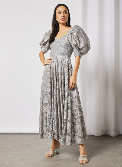 Threadz by Ajooni : آستین پفی کرست نیم تنه لباس طوسی