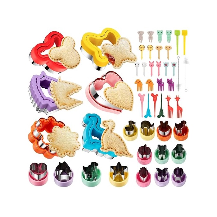- 6 عدد قالب برش ساندویچ در اشکال جذاب: میکی ماوس، دایناسور، قلب، اسب تکشاخ، گل و پروانه.