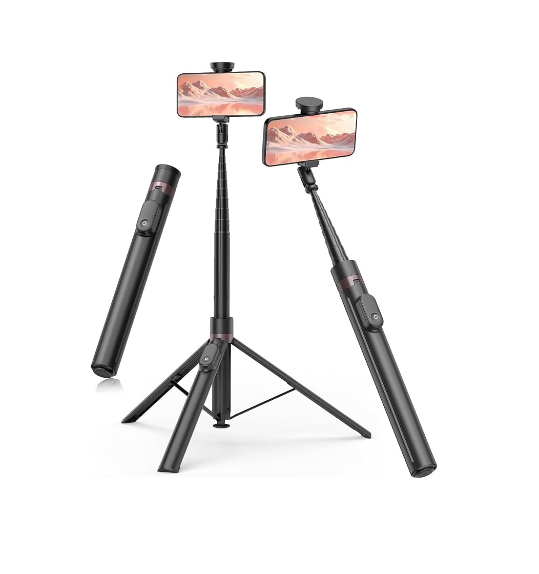 ارتفاع قابل تنظیم تا 168 سانتیمتر: با داشتن میلهی تلسکوپی 10 بخشی، این سهپایه میتواند تا ارتفاع 168 سانتیمتر افزایش یابد، که امکان عکاسی از زاویههای وسیعتر را فراهم میکند. میلهی تلسکوپی از آلیاژ آلومینیوم ساخته شده است که مقاوم در برابر سایش و خوردگی است و میتواند در محیطهای مرطوب بهطور معمول استفاده شود. چرخش 360 درجه با دو محور: نگهدارندهی گوشی دارای دو محور چرخشی است؛ محور بالایی میتواند 180 درجه به بالا و پایین بچرخد و محور پایینی میتواند 180 درجه به چپ و راست بچرخد. این دو محور با همکاری یکدیگر میتوانند چرخش 360 درجهای را فراهم کنند، که امکان عکاسی از زوایای مختلف را فراهم میکند.